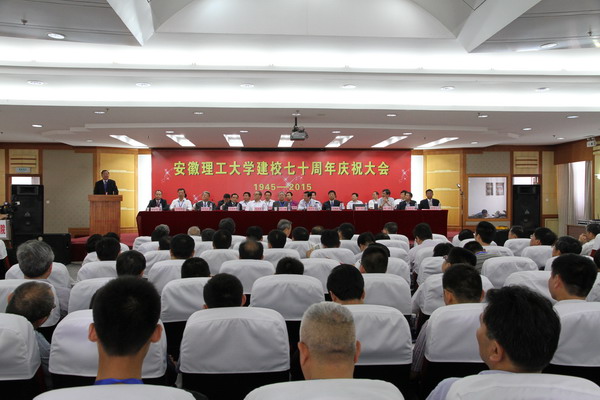 上午9点,在雄壮的国歌声中,安徽理工大学建校70周年庆祝大会在九楼报告厅隆重举行。大会由校党委书记颜事龙主持。