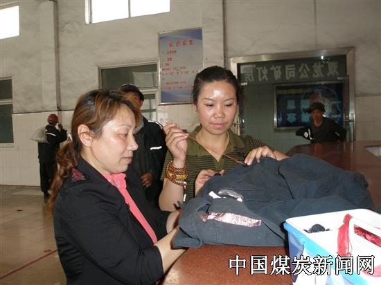 “师傅,衣服补好了,下井注意安全。”、“师傅,工作辛苦了,喝杯茶解解渴吧。” ……安徽淮北矿业双龙公司妇女协安会充分发挥协安组织的亲情优势,到井口进宿舍、上区队进班组、到社区访家庭,扎实开展形式多样、内容丰富的协安活动。冬送温暖,夏送清凉,节日送祝福,一年四季协安活动长流水不断线,用真情付出助力企业的安全生产。 图为协安员在井口为上下井职工缝补窑衣,端送茶水。