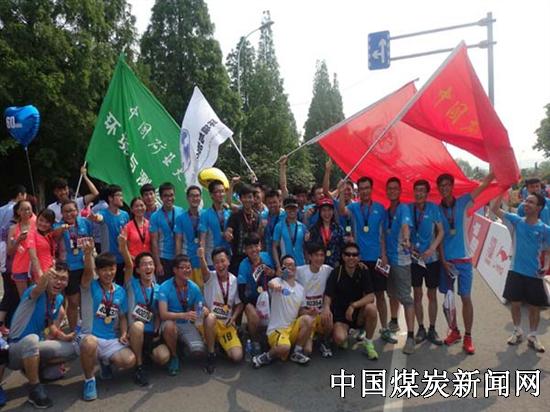 【本网讯】5月24日,由李宁公司主办的2015李宁10公里路跑联赛第四站在美丽的古城徐州拉开帷幕。来自徐州及周边地区不同性别、不同年龄、不同职业的人们因为共同的跑步爱好相聚在徐州市云龙湖天师瀑布。7时许,中国矿业大学马拉松团队统一着装,精神饱满,奔赴比赛现场。材料学院党委副书记刘海明、机电学院党委副书记张洪、体育学院党委副书记郭鹏等老师与矿大的同学们共同体验了李宁10公里“一同向前,想跑就跑”的快乐跑步文化。