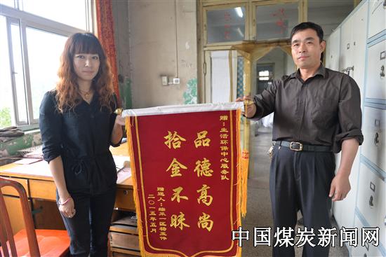 拾金不昧是我们中华民族的传统美德,做的好事不在乎大小,它体现的是一个人高尚品德和社会责任。5月27日,济二矿综采一区职工杨玉伟师傅手拿一面“拾金不昧”的锦旗来到该矿生活环保中心服务队,将锦旗送到服务队班长孔祥艳手中,口中连声的“谢谢”表达出他此时激动的心情。 原来,在5月22日,班长孔祥艳在换衣室整理职工的工作服时发现了一个钱包,里面有现金、银行卡、身份证、工作证等物品,她想丢失钱包的师傅一定很着急,于是她通过工作证上的信息,马上联系了杨师傅所在单位,很快杨师傅拿到了自己丢失的钱包。面对当时杨师傅一再的感谢,孔祥艳都委婉的拒绝了。 “我并没有多想什么,只是觉得如果换做是我丢了东西也一定会很着急,能做好这件小事帮到了别人自己也挺开心的。”孔祥艳表示她只是做好了本职工作,以后会再接再厉的。图为杨师傅将“拾金不昧”锦旗送到孔祥艳手中。(刘钊)