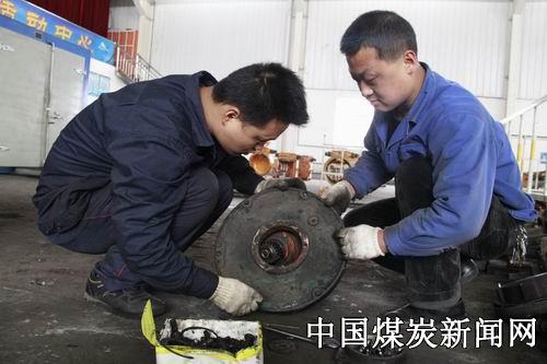 【本网讯】在持续煤价下滑、煤炭经济不景气的情况下,陕西煤业化工集团澄合矿业二矿分公司机修车间在职工中开展了岗位创新创效活动,鼓励大家在技术革新上下功夫,实现节支降耗、提质增效目标。图为维修工对机电设备进行修复。