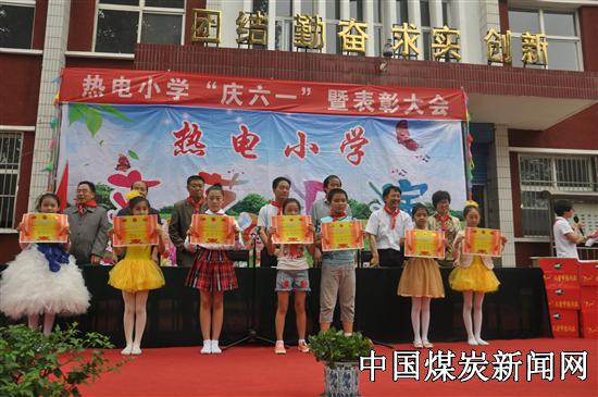 五月的中条山苍翠而欲滴,8:00,永济热电小学,鲜艳的五星红旗冉冉升起。 8:30,教学楼前成了欢乐的海洋,热电小学庆六一暨表彰大会隆重举行,200余名小学生、教职工和学生家长共庆六一国际儿童节。