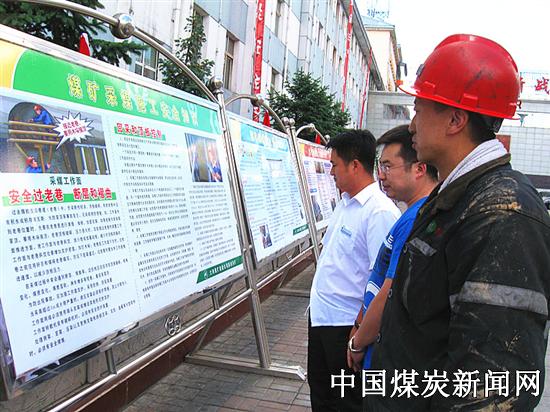 【本网讯】6月份是全国第十四个“安全生产月”,同煤集团四老沟矿结合矿井安全生产实际,围绕“加强安全法治、保障安全生产”的主题,积极筹划,充分利用广播、宣传展板、标语等形式,广泛宣传新《安全生产法》及安全生产法律法规等相关知识,努力为广大员工营造学习新安法的浓厚氛围。图为该矿员工在工业广场宣传展板前学习。