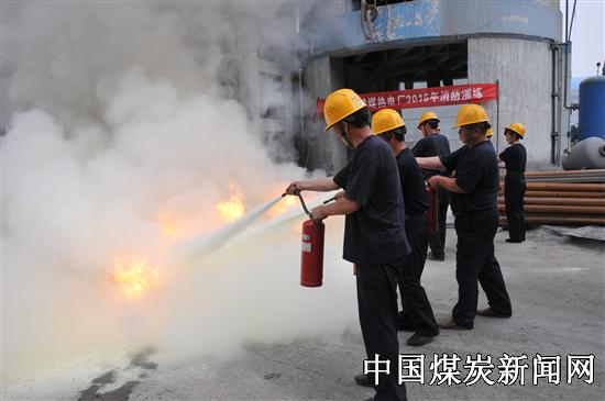鹤煤热电厂开展2015年消防演练