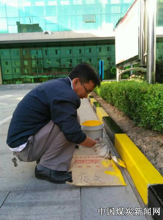 六月的清晨,走在地处桥山林区的蒲白新矿区,微风吹在身上还有点凉意,我准备去广场跑步,一股淡淡的油漆味扑鼻而来,顺着这油漆味,我决定去寻找它的来源。在新建澡堂前,原来是我们物业部的员工贠鹏蹲在地上给路边的道牙刷油漆。