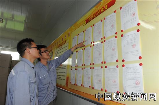【本网讯】近日,神宝能源公司露天矿党委按照党的群众路线教育实践活动要求,结合工作实际,认真、扎实开展党员承诺活动。该党委要求所有党员立足岗位实际,从自身建设、理论学习、履行岗位职责、遵纪守法、廉洁自律方面开展承诺活动。要求所有党员在《党员公开承诺书》上签名,通过党务公开栏向全体员工进行公示,接受广大干部群众的监督,进一步增强全体党员的责任意识。 图为露天矿职工观看《党员公开承诺书》。