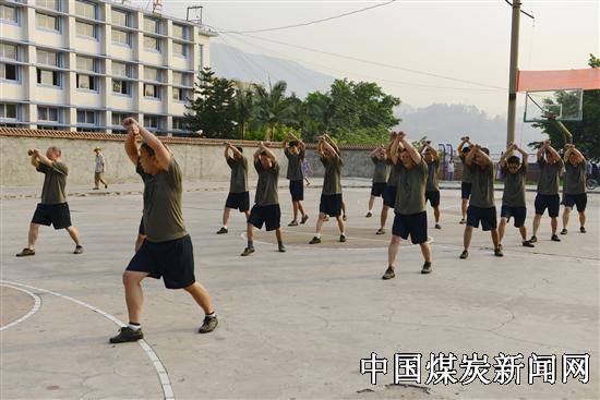 每天早晨七点半,在攀煤花山矿操场上,一支20多人身穿橄榄绿的队伍,围绕跑道跑步、做俯卧撑、练擒拿拳,以一个军人的标准,严格锻炼自己,他们就是活跃在矿山的一支准军事化应急救援队伍。