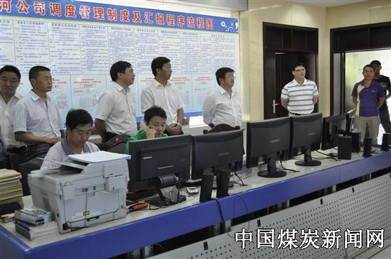 尹志华一行到松河公司后,首先参观了调度室,并询问了调度人员应知应会相关知识及日常工作流程。随后,尹志华在调度会议室主持召开了调研座谈会。
