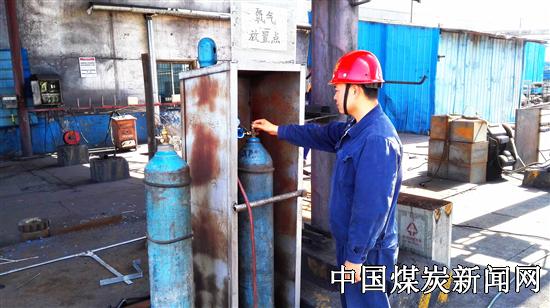 众泰煤焦化安全管理人员深入现场,对作业设备运行、动火作业工具放置、员工防护器具佩戴等情况进行安全检查,确保公司安全生产。图为2015年7月18日,该公司安全员张超飞对氧气瓶放置情况进行检查