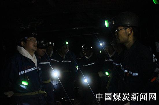 【本网讯】 7月20日,贵州盘江精煤股份公司总经理孙朝芦、副总经理易国晶、党委副书记刘永国、总工程师徐再刚、总会计师郝春艳率公司相关部室及火铺矿、金佳矿、山脚树矿、月亮田矿、松河公司、响水矿的矿长、党委书记来到土城矿,在半坡采区召开座谈会。通过井下工作面实地观摩、查看相关图纸资料及管理考核制度,与会人员相互交流经验、查找差距、提高认识,共同探讨股份公司发展大计。