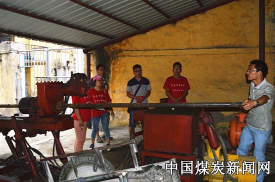 ![]() 首先,陈老师带领实践团参观了煤矿安全生产调度指挥中心,向实践团解说每个监控画面对应的井下具体位置及作用,并强调调度中心对煤矿安全生产的重要性。面对调度中心一排排繁多复杂的器械和按钮,实践团不禁发出一片唏嘘。接着,一行人随陈老师参观了地面上的井下掘进设备,如履带式全液压钻机和普通钻机等。在陈老师的讲解下,实践团的同学们边听边做笔记,并在这之中学到了钻机的工作原理以及打钻过程中应对各种意外的急救措施,同时,陈老师还补充,在掘井过程中遇到意外后的应急技术并再次申明安全第一。