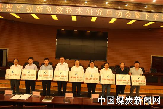 目前,该中心已对确立的“提高设备开机率研究与应用”、“ 巷道围岩地应力测试与分析研究”、“ 优化主井提升系统,提高生产能力”、“研究打造巴彦高勒煤质品牌”等37项课题,由各研究所逐一制定实施方案,本着先易后难的原则,加快课题研究成果转化和升级。图为巴彦高勒煤矿技术研究中心揭牌现场