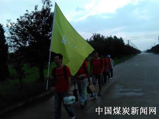 ![]() 实践团7点出发时,天气温和清爽,每一个人都精神抖擞、斗志昂扬。不一会儿,天气就慢慢变得炎热起来,实践团顶着烈日,沿着原定路线前行。到了正午时分,烈日当空,实践团停下脚步,简单用过午餐,休息调整之后又继续向前进发。炎炎烈日炙烤着大地,柏油马路的温度更是达到了50摄氏度,为了避免中暑,实践团就沿着道路两旁的树荫行走。在大家支撑不住的时候,张锟同学就会带领大家一起唱激情昂扬的革命歌曲来鼓舞士气。一路上,没有一个同学叫苦或叫累,大家互相照顾,互相鼓励,终于在天黑之前到达目的地。 一路的汗水,一路的坚持,让实践团全体成员深深体会到了当年革命者的艰辛,中国矿业大学资源学院实践团成员也必将继承革命者不抛弃,不放弃的精神,在人生的道路上继续走下去。2015宣讲走访实践团,我们在路上!
