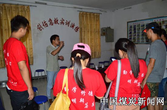 8月4日,为进一步了解煤矿安全急救技术,中国矿大实践团在张集煤矿救援队队长李师傅的带领下,对煤矿突发事件的急救过程进行了学习。