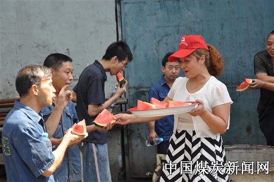 该矿党政工带着爽口的西瓜、解暑的藿香正气液、清凉的矿泉水等防暑降温品,为正在高温下坚守岗位的员工送上情切的慰问。在与员工的交流中,该矿领导对大家的辛勤劳动表示慰问,同时,希望大家坚定信心,相信企业一定会度过难关,并时时叮嘱大家做好夏季防暑降温工作,确保身体健康。 进入夏季以来,该矿党政工心系高温作业环境下员工的健康,不但为每一名员工购买发放了藿香正气口服液、矿泉水等防暑物品,还组织协管员坚持每天熬制绿豆汤、银耳汤、茶水等防暑降温饮品,分早中夜班将凉好的饮品放置在井口供上下班人员饮用,为他们送去清凉的问候。