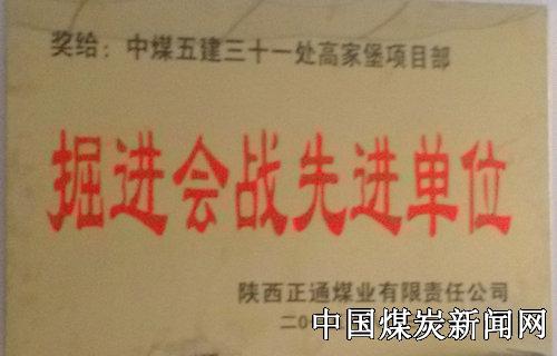 【本网讯】9月8日,中煤五建三十一处高家堡项目部被正通煤业公司授予“掘进会战先进单位”荣誉奖牌。
