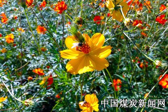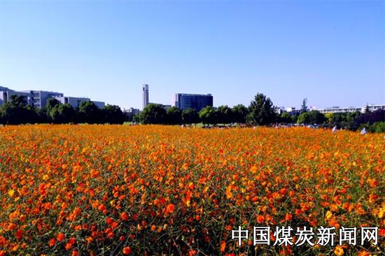 初秋时节,秋高气爽,在中国矿业大学南湖校区的一角,一片硫华菊花海正在静静的盛开。一阵秋风吹过,硫华菊轻轻的摇曳。30多亩的硫华菊形成一片橙黄色的花海。