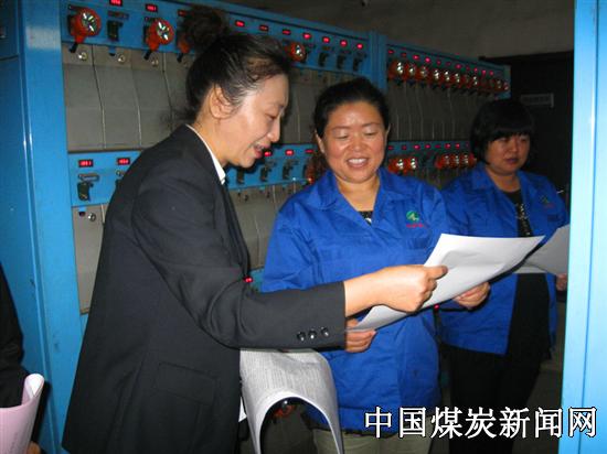 此次活动中,共发放《山西省女职工劳动保护条例》宣传手册20余本,相关宣传资料300余份。图为该矿女工委工作人员在灯房发放宣传资料现场。