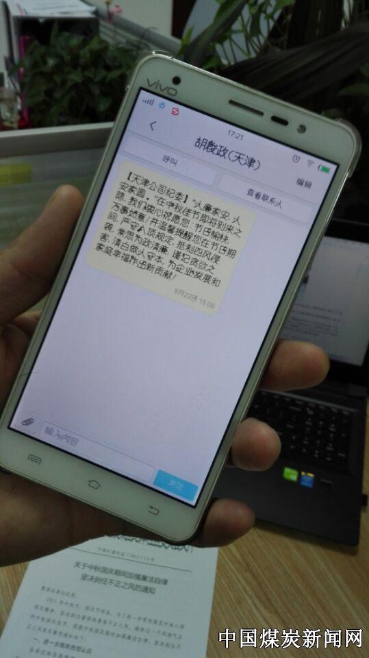 ![]() 这是近日,中煤三建天津公司领导班子成员、部室负责人以及项目部中层以上领导干部的手机上陆续收到的一条警示短信。“以前都是收到亲人朋友的祝福短信,今年收到了组织上给的提醒和告诫,感觉蛮是亲切。” 公司纪委负责人介绍,节前发送助廉短信,是为了提醒广大党员干部特别是各级领导人员牢固树立廉洁自律意识,营造风清气正的良好氛围,也是对当前正在开展的“三严三实”专题教育的落实和细化。
