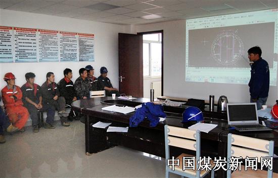 目前,该项目部正在施工内蒙古伊泰广联煤化有限责任公司红庆河副井井筒装备工程,井筒直径10.5米。为了让职工更加深刻的领会施工内容和安全注意事项,他们一改传统的班前会仅靠口述讲解的方式,将需要讲的内容精心制作成ppt和施工图纸,对职工进行重点讲解,使班前会的内容不再空洞,图文并茂,更易让职工接受。同时,每次班前会前10分钟,挑选典型事故案例影片进行播放,对职工进行安全教育。