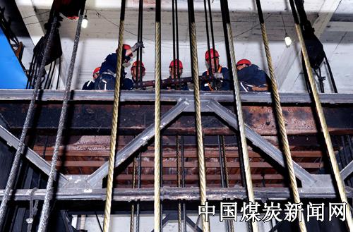 【本网讯】9月2日,安徽淮北矿业朱仙庄矿保运一区几名职工正在更换副井主提升钢丝绳。该矿牢固树立“安全第一”的思想,切实摆正安全与生产、安全与效益的关系,安排五天时间对矿井关键部位机械设备进行全面检修,杜绝设备“带病”运转。