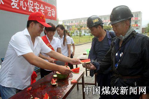 【本网讯】夏日炎炎,为让井下一线职工保持良好的身体和精神状态,7月30日,河南能源焦煤公司方庄一矿工会、团总支联合开展了“井口送清凉、爱心促安全”活动,女工协管员、青年志愿者将一块块香甜可口的西瓜送到职工手中,并叮嘱大家要时刻注意安全,员工们纷纷表示,一定要按章作业、正规操作、坚决实现安全生产。