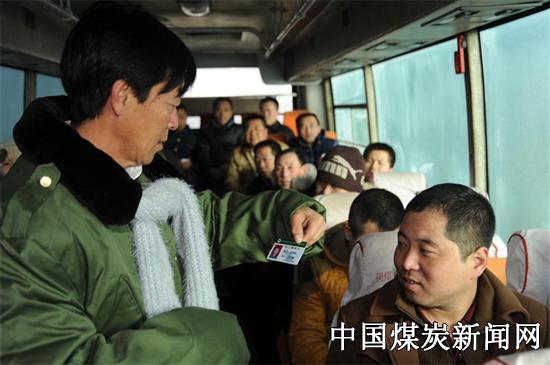 在岗一分钟,干好六十秒。这就是老张,他要将余热发挥到离岗一刻。他也用自己的实际行动践行了这一诺言,为全矿员工树立了乘车监督勇作为、节支降耗有作为、临危不惧敢作为的好榜样。图为老张正在通勤车上检查乘车人员的乘车卡