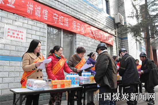 【本网讯】 2016年1月19日,河南能源观音堂煤业工会在井口工业广场举办“讲诚信、守红线、保安全”有奖知识竞答活动,女工家属协管员们通过有奖竞答的形式帮助职工学习安全“红线”知识,叮嘱职工信守安全承诺,敬畏“红线”、严守“红线”。