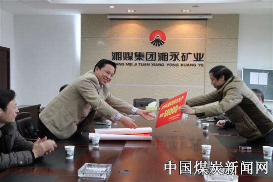 【本网讯】2016年元月1日,湖南煤业集团资兴安全管理局副局长何爱保一行向实现安全年的湘永矿业公司送去贺信,嘉奖6万元安全奖金。