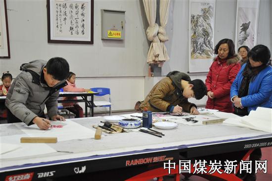【本网讯】新年伊始,河南能源观音堂煤业公司工会举办了“迎新春,书画交流”活动,20余名书画爱好者齐聚在该公司文体中心内挥毫泼墨,年龄最大的已年过古稀,最小的六七岁,个个精神抖擞,每幅墨宝都铿锵有力,栩栩如生,写出了新年的喜气,画出了新年新气象。图为书画爱好者创作现场。