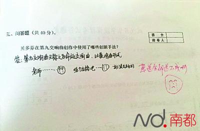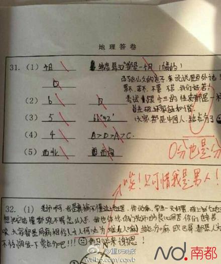 今天是广州公办小学出成绩单的日子,又是几家欢喜几家愁了…… ![]() 据南国今报报道,下面这张试卷是柳州市某小学五年级的数学期末考试卷,上面写着:“老师,给个80吧!80好过年,求您了。”刚好学生考试成绩也是80分。当试卷在朋友圈里不断转发时,不少人为老师的理解点“赞”。随后,老师将学生的考试卷完整图片贴了出来,并注明:这是为了证明他是真正考了80分,而不是老师配合给个80分好过年。 ![]() 记者了解到,把孩子试卷图片发到朋友圈的是蒋老师,她介绍,平日里这个孩子的数学成绩都在70分左右。只是没想到,孩子竟然在卷子上留言,看到学生的留言,她似乎看到孩子忐忑不安的神情。 本来平时就是70多分,期末认真一点拼个80分也不难,再加上给老师留言,相当于上了个双保险啊!小魔上学的那会怎么没有这么机智呢! 后来小魔翻了一下网络,发现现在给老师留言的学生还真不少!求分数也非这位Boy的原创。但是求多少分得多少分貌似他是第一人,大多数人的下场还是很悲惨的。 早在2013年,重庆一所职业学院的学生就在试卷上留言:“老师,祝您身体健康、万事如意、新年快乐,求给60分回家过一个好年!” ![]() 结果阅卷老师说:“虽然看到这样的祝福语,让我心情不像刚看到卷子那么糟糕了,但是大片空白还是让我无法给出‘人情分’。” 去年株洲一个初三的学生因为答不出数学题,在试卷上求老师:“万水千山总是情,给我1分行不行?” ![]() 老师只是冷漠地回他:“小测试,真心醉了。” 武汉音乐学院的一名学生在试卷上画哭脸求老师给个及格。批改卷子的教授画了个更大的哭脸,说“想送分都送不成啊!” ![]() 既然死皮赖脸地求是不起作用的,有些学生还想到了这招。 ![]() 求阅卷老师此时此刻的心理阴影面积。 但也有老师不吃这套! ![]() 要不咱们换个招数,跟老师谈谈心吧! 厦门一个中学男生给老师留言:“等我有房有车就来娶你哦!”恩,这招美男计说不定管用,老师一心软就高分了…… ![]() 但也要小心剑走偏锋走过了……这个女生给老师留言“女人何必为难女人”,偏偏阅卷老师是个男人…… ![]() 所以,小魔还是要奉劝大家,试卷留言求分真没用,因为老师们都是这么想的——