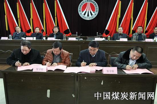 2016年1月19日上午,该矿2016年安全工作会隆重召开了。会上,矿党政认真贯彻落实矿业公司安全工作会精神,总结全矿2015年安全生产管理经验,对全年安全工作进行了全面详细的安排部署,研究措施,积极防范,表彰先进,再鼓干劲。该矿党政领导与基层单位签订安全责任书,共同立下实现全年安全‘零’目标的军令状,向安全生产十年目标冲刺,圆满完成全年安全工作目标,实现“十三五”良好开局发挥了重要作用。图为该矿党政领导与基层单位领导签订安全责任书场景