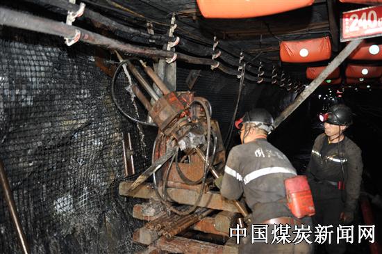 【本网讯】山西大同煤矿集团四老沟矿面临复杂地质条件,不断攻坚克难为生产创造安全条件。为防止小煤窑老空巷及现采工作面上部采空区积水造成透水事故,该矿放顶队长期坚持对可疑区域进行钻孔探放水,确保工作人员及设备不受水患影响。图为该矿放顶队员工正在404辅盘区5427巷对上覆11号层采空区进行钻孔探放水作业。
