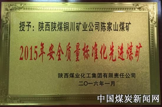 【本网讯】近日,在陕煤化集团召开的2016年安全工作会议上,铜川矿业陈家山矿喜获陕煤化集团2015安全质量标准化先进煤矿和安全先进矿井两项殊荣。