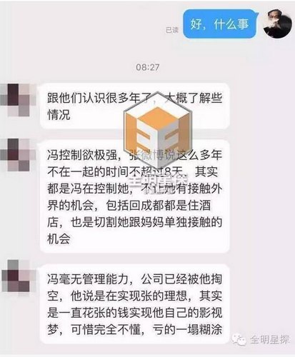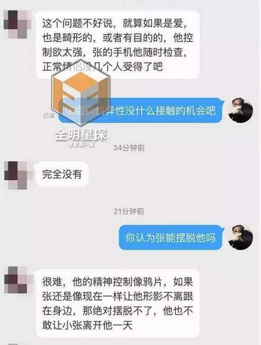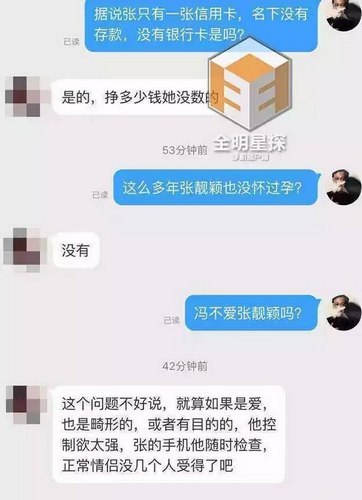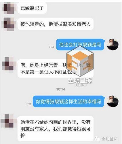 原标题: 张靓颖母亲和公司老员工再曝新料:冯轲不仅成功洗脑张靓颖,还疑似把“小三”安插到张靓颖身边“监视”她? 这两天张靓颖与男友冯轲刚宣布下月将在意大利举行婚礼,却遭到张靓颖母亲发公开信反对,随后张靓颖与冯轲在微博上做了回应,引发了网友的热烈讨论,不久更有网友曝出冯轲找了张靓颖的粉丝当小三,对此张靓颖又予以否认,事情发展太快,真相究竟如何呢? 今日有位曾在北京少城时代文化传播公司工作多年的老员工爆料称,冯轲完全控制了张靓颖,少城时代也已经被冯轲掏空,而网曝冯轲有小三的事情也属实。 该爆料人称,冯轲的控制欲极强,会随时检查张靓颖的手机,控制着张靓颖不让她有接触外界以及别的异性的机会。甚至回成都两人都是住酒店,不给张靓颖跟妈妈单独接触的机会。该员工更是爆料,张靓颖身上经常青一块紫一块,原因令人猜想不断。 爆料截图↓↓