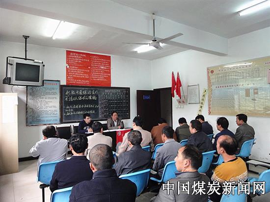 该矿综采队抓安全生产,不忘记综治宣传工作,从而,进一步提高了职工道德法律意识,从源头上有效预防了各类犯罪,为本矿维稳工作及年度各项安全生产任务的落实完成夯实了基础。图为综采队组织职工学习法律法规现场