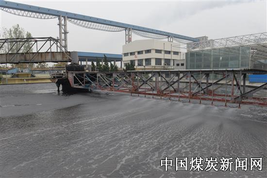 针对这一困扰了他们许久的问题,该车间自动自发,出主意,想办法,终于研制出了浓缩池喷淋消泡装置,该装置从研制、安装到调试试用仅用了七天的时间!该设备使用直径50公分钢管加分支6分钢管安设高压喷淋头,利用修旧利废修复的高压潜污泵进行加压,固定在耙架上,自动运行喷淋消泡。此装置投入使用后,可使洗煤介耗每吨降低0.2kg,每月介耗费用可节约8.12万元。该装置自投入试用以来有效地改善了溢流堰堵篦网的现象,降低了沉淀药剂的消耗,确保了重介洗煤煤质质量。