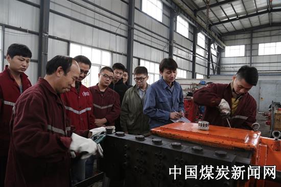 “乳化液泵的加油阀应经常性的进行及时清理,避免堵漏……”10月28日在中煤集团大屯公司徐庄煤矿综机管理设备库里,采煤一队维修工、技术大拿陶开建正在给十多名维修工进行现场讲解乳化液泵使用及维修技术。