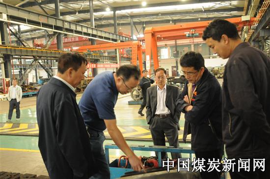 朱家道一行首先来到生产车间详细了解采掘设备检修进度情况,谭兵向朱家道一行汇报了矿机公司近期生产经营情况。近一段时间以来,股份公司各矿安装采面较多,检修任务重,为保证矿井的正常生产接续,矿机公司在国庆假日期间不停产,抓紧时间为矿井生产抢修设备。从9月26日至今,检修液压支架200余台,已陆续运往各矿。