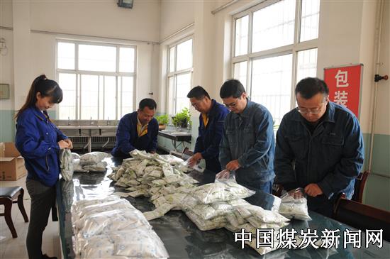 【本网讯】近日,神宁太西洗煤厂以天猫电商为平台,紧紧盯住“双十一”有利时机,积极做好活性炭产品的销售工作,扩大产品市场影响力,为进一步开拓市场空间打基础。图为销售分公司人员进行产品包装。