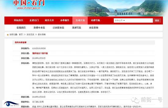 截图 导语 近日,湖南省石门县一14岁女孩自杀未果。据了解,女孩因遭性侵过她的男子威胁,不堪忍受压力,在学校喝农药自杀,后经抢救已脱离生命危险,目前女孩已回家休养。 前街一号记者了解到,从去年4月份开始,该女孩遭受两名中年男子性侵。 近日,湖南省石门县政府网站县长信箱的一封来信中,一自称石门县南北镇的农民表示,今年10月份,侄女因被人强奸怀孕自杀未果。11月1日,前街一号记者联系到遭性侵女孩贝贝(化名)的姑姑舒女士,舒女士称,侄女贝贝今年14岁,就读初中二年级,贝贝母亲是聋哑人,父亲特别老实,家里条件不好,平时家人对孩子的管教也比较少。10月7日贝贝被发现在学校喝农药自杀,后被学校老师送到镇医院抢救,洗胃后已脱离生命危险。事后,在学校老师的多次询问下,贝贝说出了自杀实情。贝贝告诉老师,因遭到强奸过她的男子舒某威胁,不堪忍受压力才自杀。 舒女士介绍,去年8月份,贝贝开学的前几天,同村50岁左右的男子舒某到贝贝家做客,当晚住在了她家里,趁孩子父母不在家,和贝贝发生了性关系。之后,舒某以给贝贝零花钱、买衣服等为由诱骗她,不让贝贝将两人发生性关系的事情告诉他人。今年国庆期间,贝贝不愿再理会舒某,将舒某的微信拉黑,却反遭舒某威胁。舒某给贝贝打电话,扬言要把他们发生性关系的事情告诉学校校长,还要到她家喝药自杀,让贝贝的父亲负责养舒某的父母。因不堪忍受此番压力,10月7日返校后,贝贝喝农药自杀,因抢救及时脱离生命危险。目前,贝贝身体已经康复。 舒女士称,贝贝和舒某发生关系后,贝贝的父母知道此事,找到舒某,经人调解,舒某给了贝贝父母一万元私了,并答应不会再和贝贝来往,“他们就是不懂法,觉得是丑事,没有声张。” 舒女士说,据了解,去年4月份,贝贝还和50多岁的班车司机金某发生了性关系。因贝贝每周上学、放学都要乘坐村里的班车,贝贝和班车司机金某在2014年认识。 之后,金某多次到贝贝家里,去年4月份的某天,金某以让贝贝带路为由,把贝贝带到村中的一个老屋,与之发生性关系。事后,金某给贝贝200元钱,不让她告诉家人。舒女士称,警方在调查后发现,在今年5月21日,金某给贝贝打了14个电话。 舒女士表示,网上内容不知是何人发布,部分内容不属实,“贝贝并没有怀孕”。舒女士称,家人了解情况后,10月12日到派出所报案,警方立案,10月24日,警方将金某、舒某抓获。经警方审讯,二人交代和贝贝发生过多次性关系。 在石门县政府网站上,石门县公安局回复该来信称,经查,来件人反映情况基本属实,县公安局南镇派出所已受理并立为刑事案件,目前已经抓获并刑事拘留2人,案件在进一步侦办中。11月1日,前街一号记者联系到石门县公安局和南北镇派出所,对方均表示,目前案件在侦办中,具体案情不便对外透露。