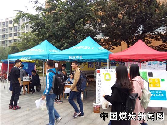 为培养在校大学生的主人翁意识、倡导积极乐观的生活态度和营造积极向上的学习氛围, 10月25日中午,中矿大矿业学院、安全学院、理学院和计算机学院共四个学院于三食堂广场进行中国矿业大学第十届宿舍文化节的宣传推广工作。