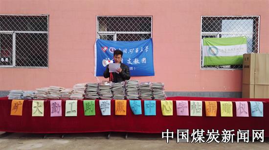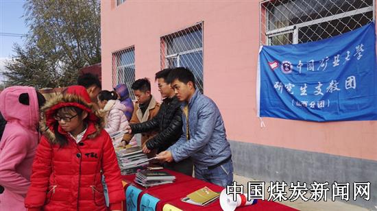 【本网讯】近日,中国矿业大学第十八届研究生支教团山西分团,在灵丘县石家田九年制学校停车场,举行中国矿业大学勤工助学服务中心字帖捐赠仪式,为各年级学生发放字帖。