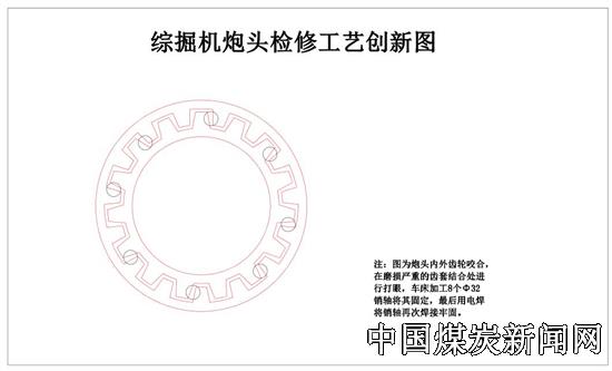 谈起这项专利,路进介绍说,当掘进队井下掘完一个工作面,就要对综掘机各部位进行回收检修。车间去年检修掘二队综掘机炮头时,发现内齿套和外齿套严重磨损,已经被掘进队认定为报废设备,需要重新购置新炮头。