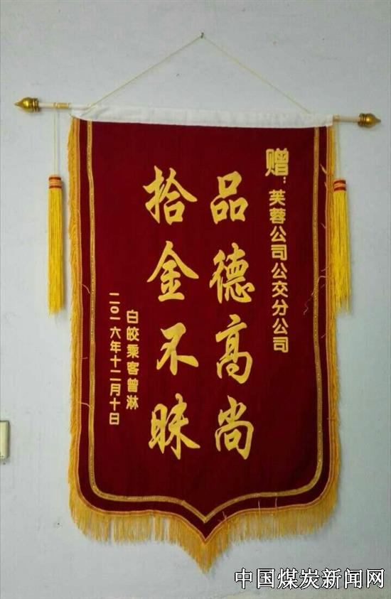 近日,川煤芙蓉白皎煤矿市民曾女士,将一面写有“拾金不昧 品德高尚”的锦旗,亲手交到了芙蓉公交车川Q31672司机喻光辉手上,激动地说:“师傅,谢谢您!”