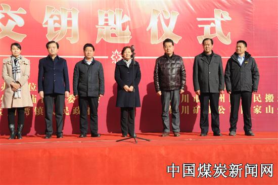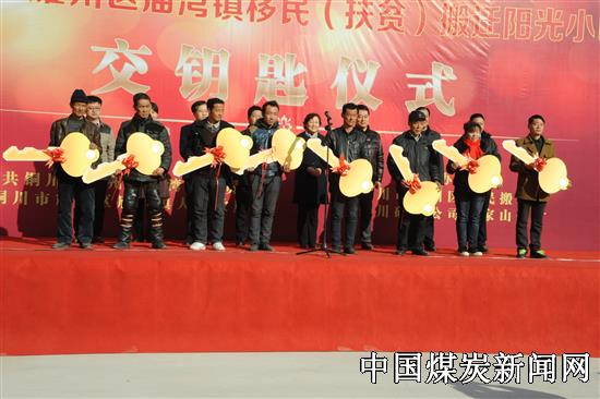 交钥匙仪式首先由陈家山矿党委副书记郝青松代表陈家山矿致了欢迎词,其次由庙湾镇党委书记左小兵代表镇政府做了讲话,他指出,这次移民搬迁活动是上级政府对搬迁户的关心之举,大家要心怀感恩,感谢上级政府的关心,入住后要认真、自觉遵守小区的各项管理制度,共创和谐、文明小区。最后由各位领导现场为搬迁户发放了钥匙,钥匙发放完毕后,各位领导现场参观了房屋结构并与入住居民进行了交谈。此次移民搬迁交钥匙活动既是陈家山矿与庙湾镇政府合作共建和谐文明小区之举,更是上级政府为民办好事、办实事的新创举。