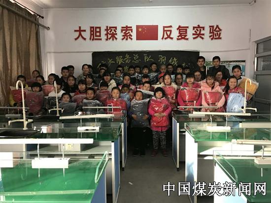 2016年12月21日上午,中国矿业大学第十八届研究生支教团山西分团,在石家田九年制学校物化实验室为贫困学生发放羽绒服,让学生们感受社会的温暖,冬天不再寒冷。