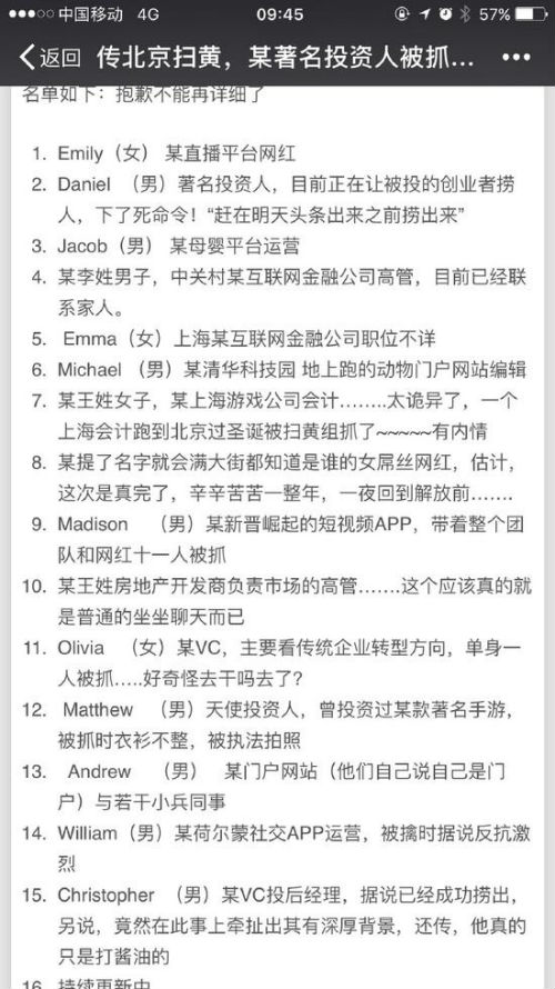 今日(12月26日),网上曝出一份扫黄落网人员的名单,包括不少知名网红,还有知名投资人和企业高管,令人咋舌。