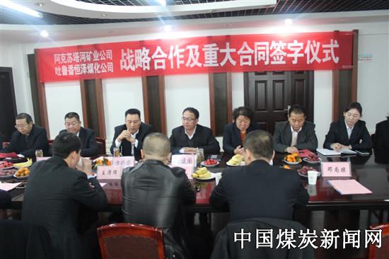 【本网讯】12月8日上午,在新疆一师塔河矿业公司会议室,阿克苏塔河矿业公司与吐鲁番恒泽煤化公司举行50万吨煤炭销售签约仪式。
