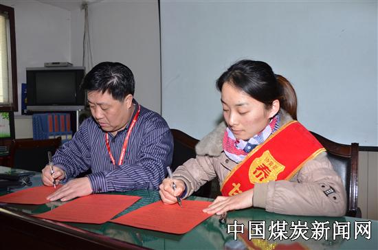 【本网讯】春节刚过,山东能源淄矿集团许厂煤矿女工委针对职工思想容易波动的实际,及时发动女工协管员挂靠到生产区队,签订安全包保协议书,用真诚热心协助矿工搞好安全。图为2月13日,该矿女工协管员张娟与普掘分区支部书记李希成签订挂靠包保协议书。
